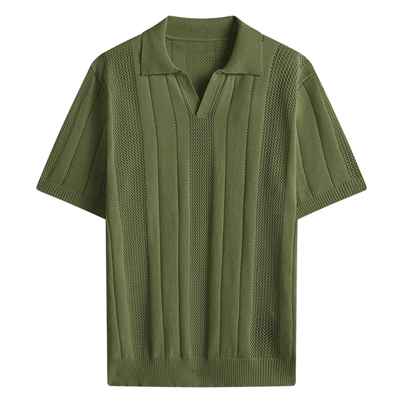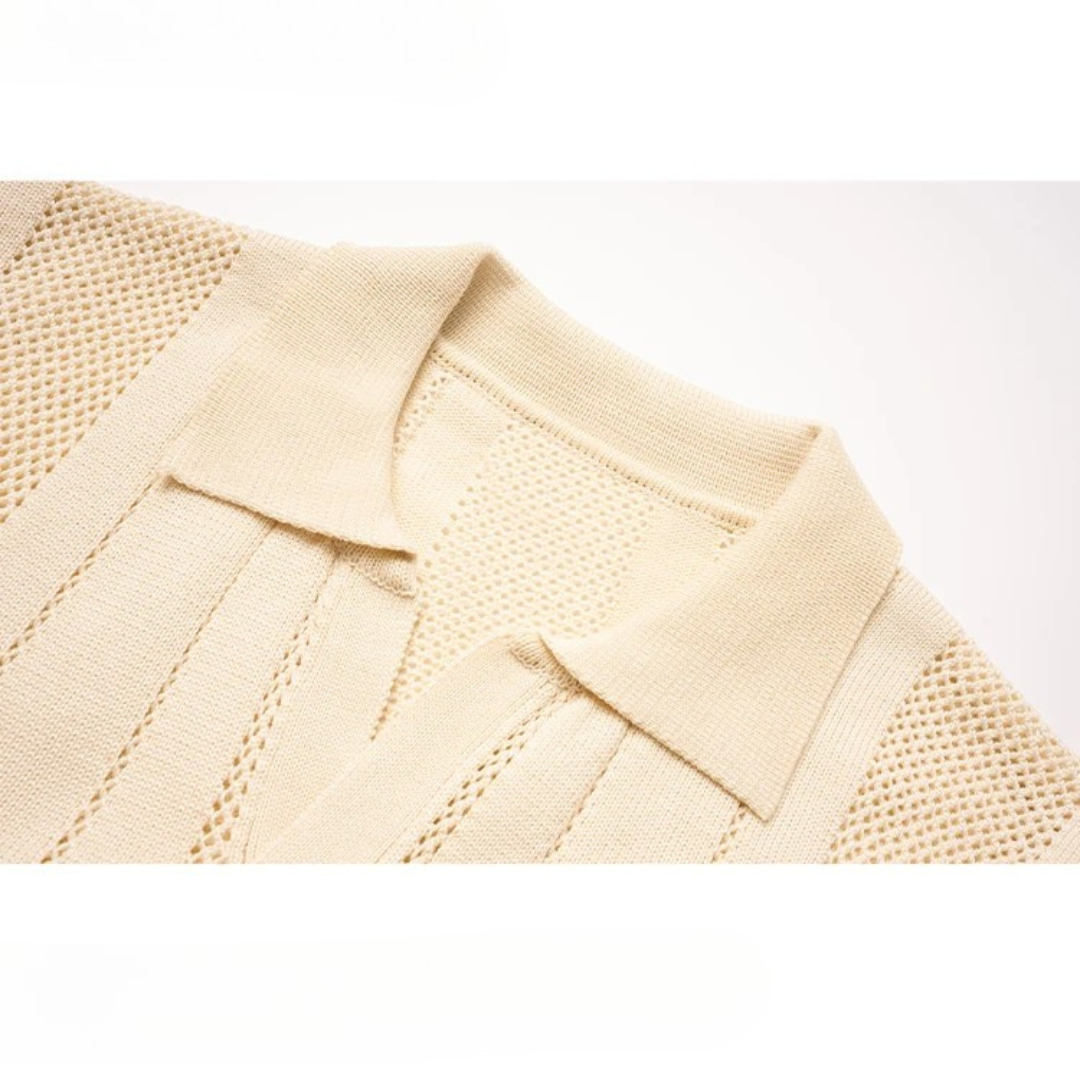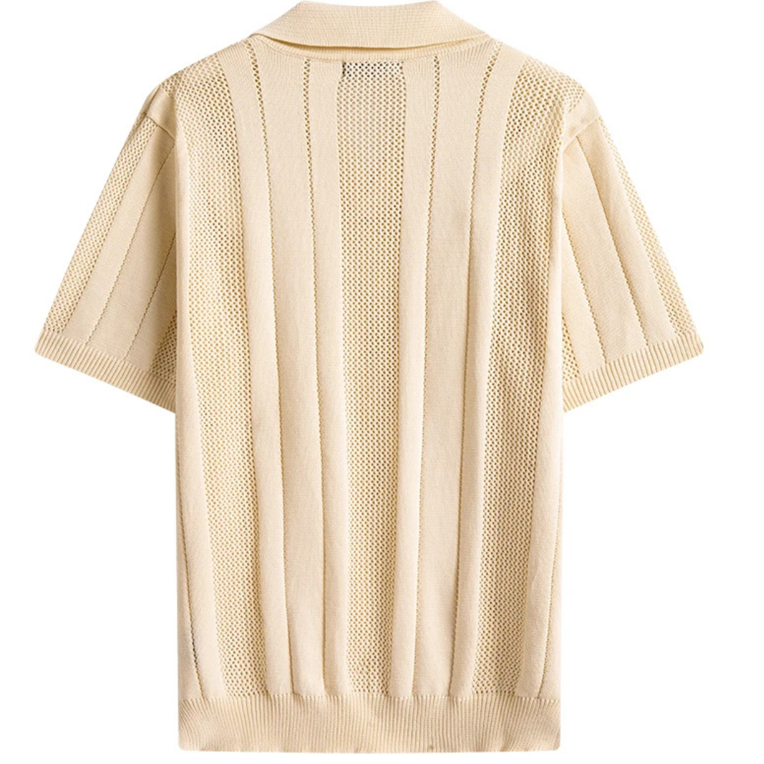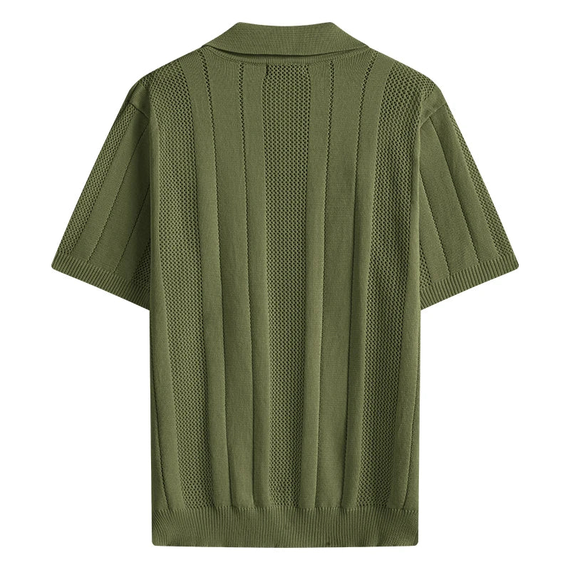 A classic, year-round menswear essential, this polo is crafted from breathable textured knit. Its soft handfeel and subtle striped pattern enhance the garment’s timeless silhouette, while the regular fit ensures both comfort and versatility.